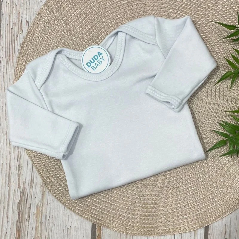 O body possui modelagem manga longa e golinha americana que é um corte especial na altura dos ombros feito para melhor vestir na hora de passar a cabecinha do bebê. Tecido suedine 100% Algodão super confortável. Botões de pressão entre as perninhas facilitando na hora de trocar! O body perfeito para montar o enxoval do bebê.