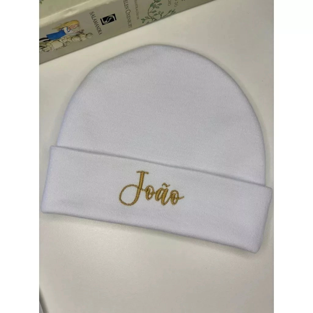 • 1 Touca de malha de algodão personalizada com o nome do bebê